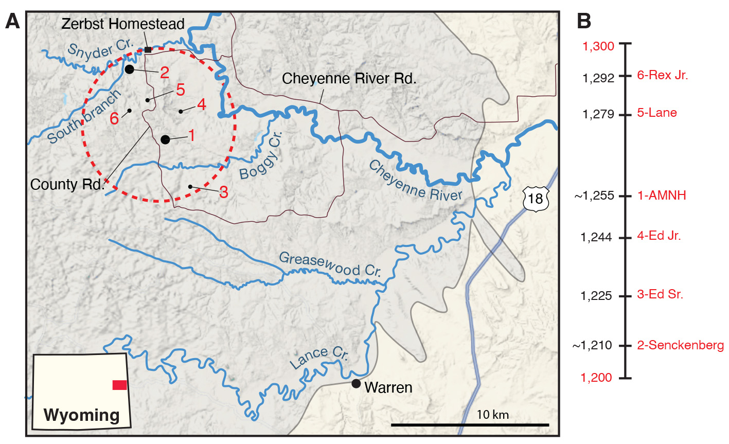 Fig. 1. Dinosaur “mummy zone” in the Lance Formation of east-central Wyoming.